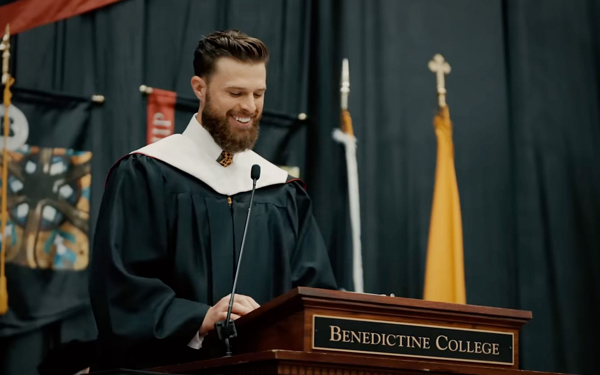 For example, he urged the graduates to take pride in their Catholic college and values, adding, “Not the deadly sin sort of pride that has an entire month dedicated to it, but the true God-centered pride that is cooperating with the Holy Ghost to glorify Him.”